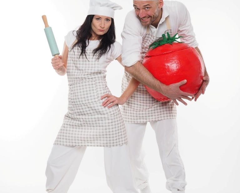 „Prościutko” to interaktywny spektakl dla całych rodzin. Razem z bohaterami widzowie przeżyją zabawne histroie i przygotują pyszne włoskie potrawy.
